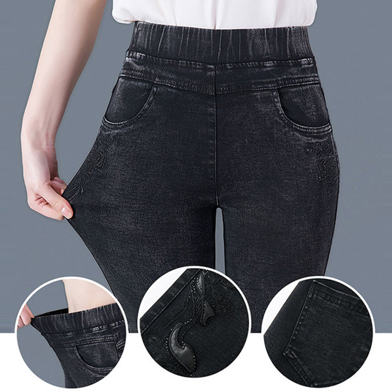 高腰设计,拉长身材比例。高腰牛仔裤,显瘦显腿长。直筒裤型,修饰腿部线条。