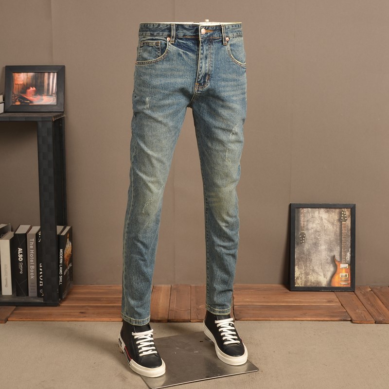 这款牛仔裤采用了水洗工艺,手感柔软,穿着舒适,修身的版型,上身效果很好,很显瘦,搭配一件T恤,就能轻松穿出时尚感。
