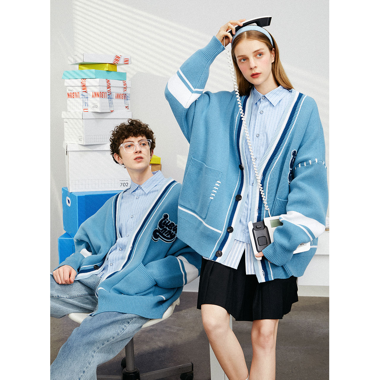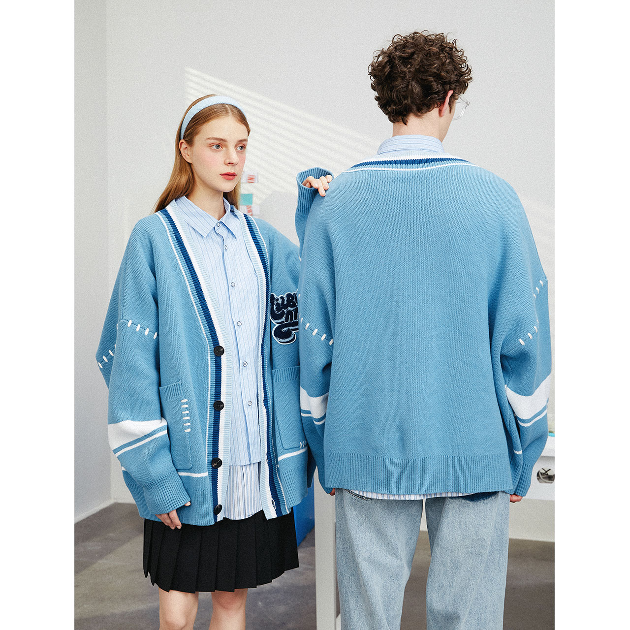 日系学院风针织开衫,经典的圆领设计,简约大方,穿着舒适。