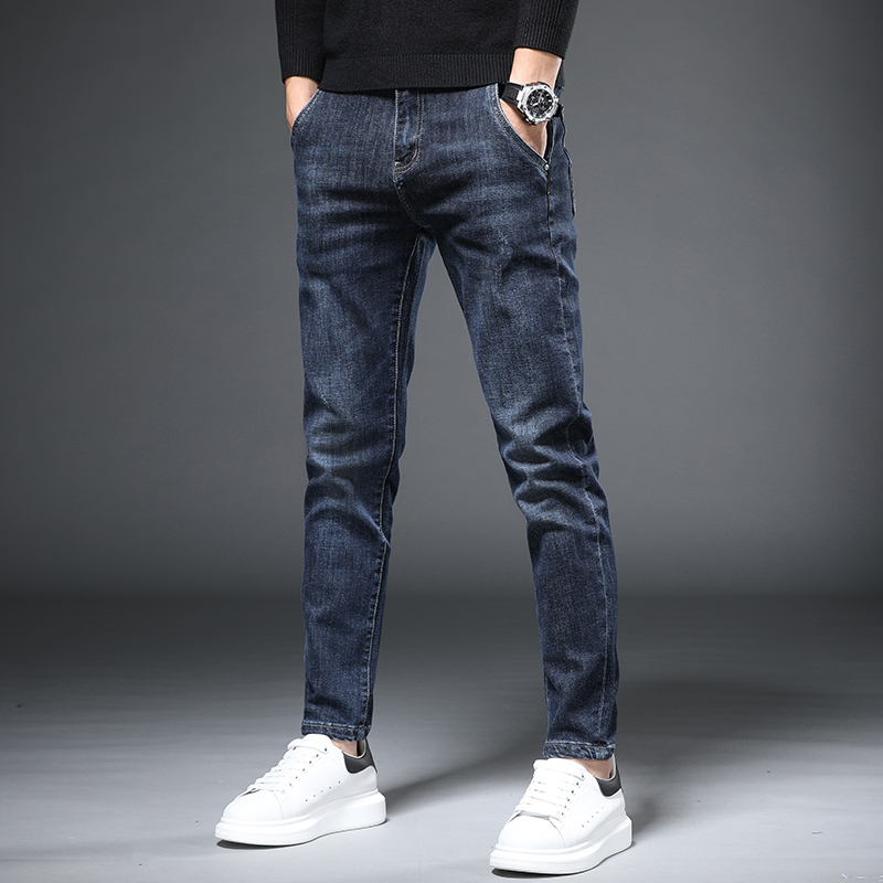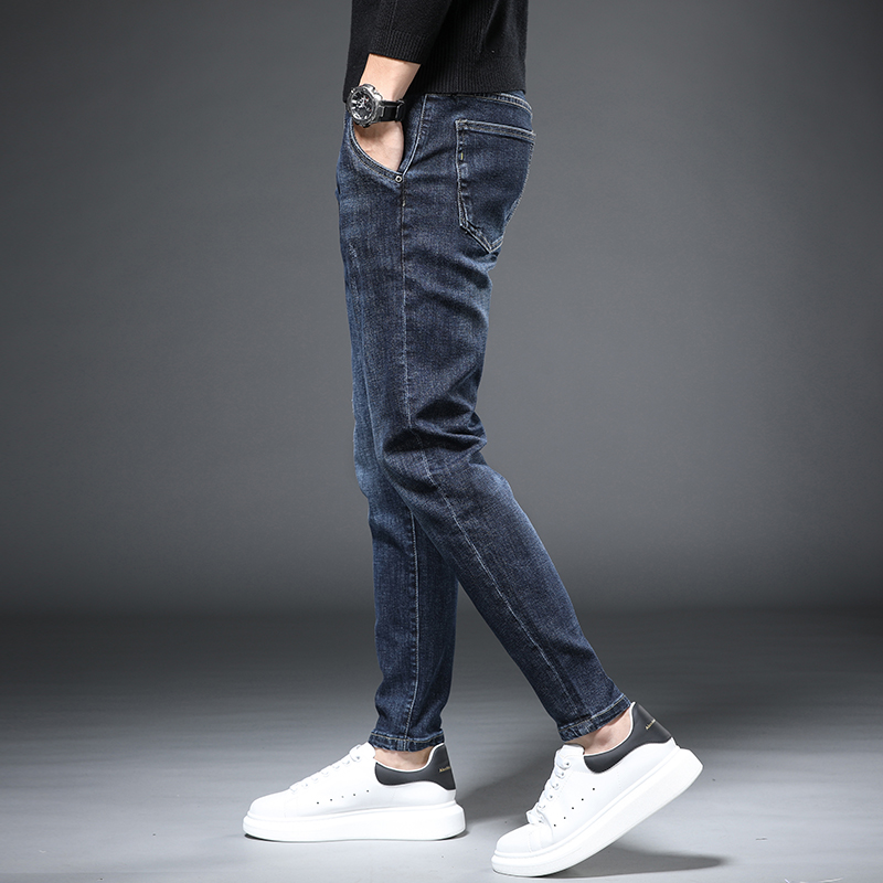 这款牛仔裤采用了修身的版型设计,上身效果很好,很显瘦,搭配上一件T恤,就能轻松穿出潮男范。