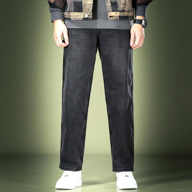 高腰设计,拉长身材比例。高腰牛仔裤,显瘦显腿长。直筒裤型,修饰腿部线条。