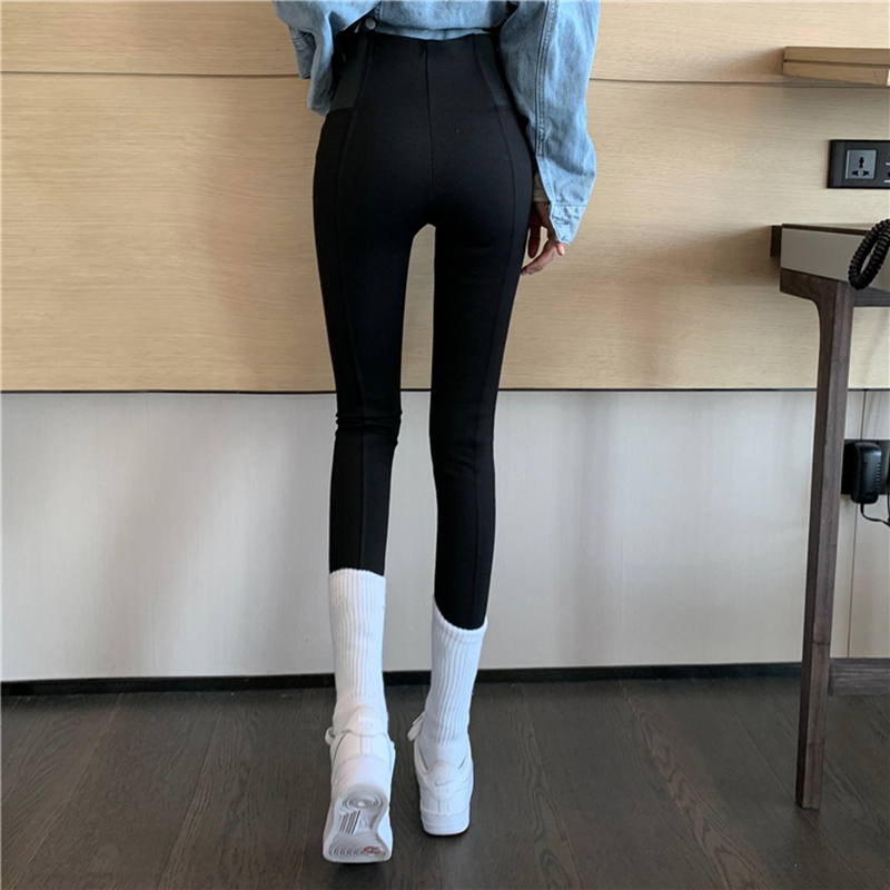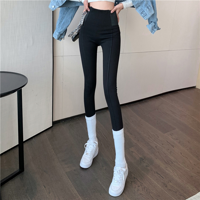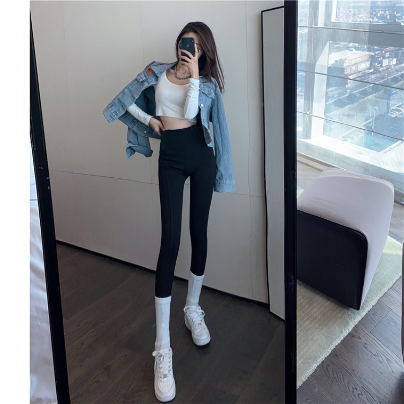 高腰的设计,拉长腿部线条,显瘦效果很好,高腰的版型,很显高挑,修身的剪裁,修饰腿部曲线,上身很有范。