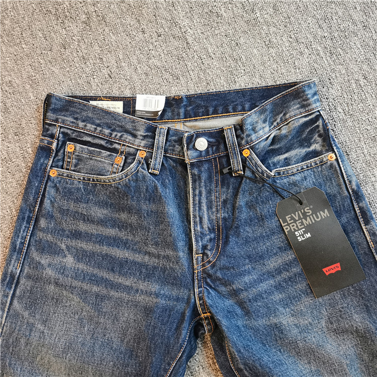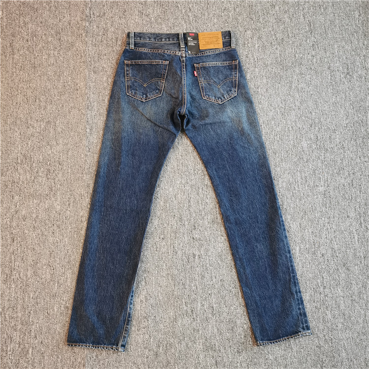 直筒裤型,修饰腿部线条。牛仔裤,穿着舒适不紧绷。深蓝色的色调,经典百搭。