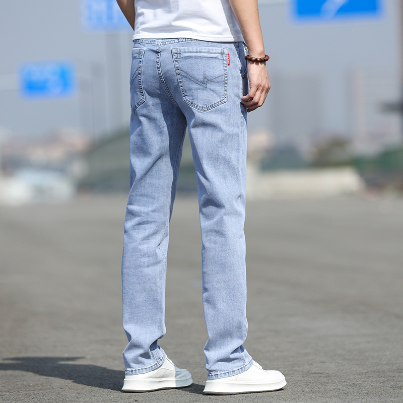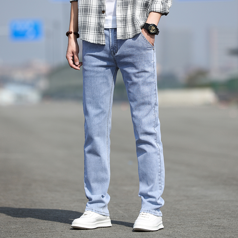 高腰设计,拉长身材比例。高腰牛仔裤,显瘦显腿长。直筒裤型,修饰腿部线条。