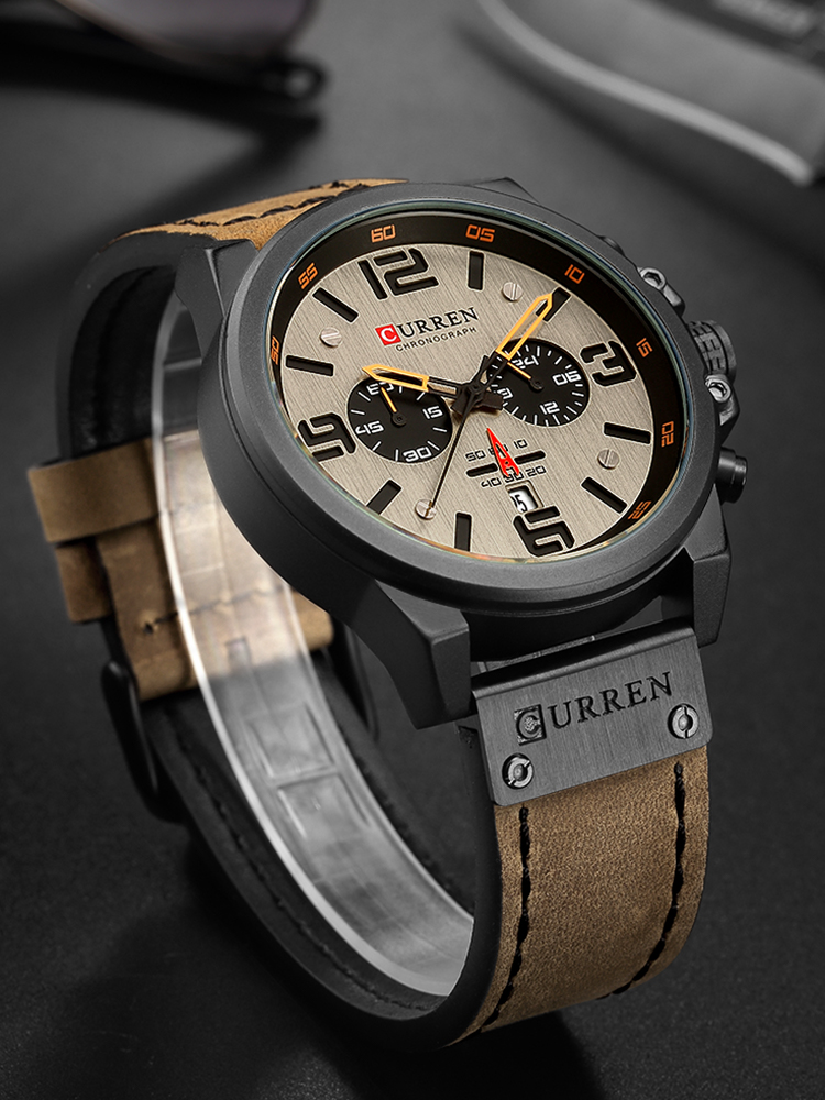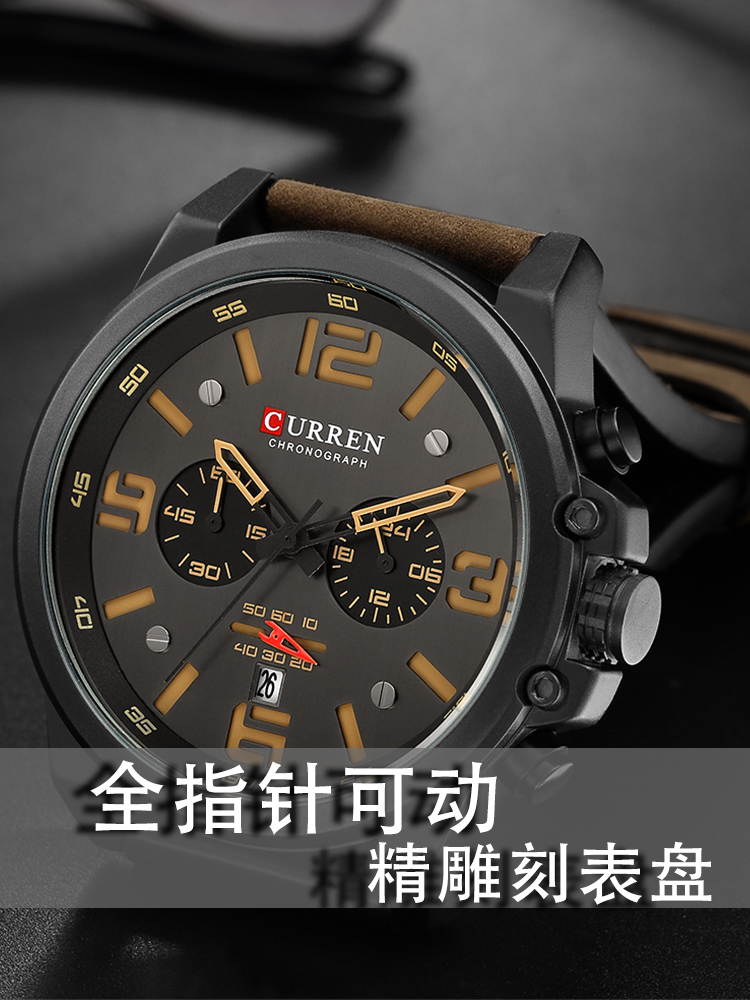 真皮材质,佩戴舒适透气,大容量,满足日常的需求,简约款式,休闲时尚百搭,手表设计,彰显男士魅力。