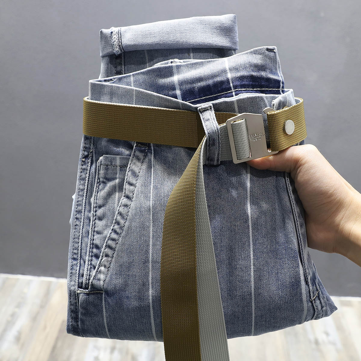 高腰设计,拉长身材比例。高腰牛仔裤,显瘦显腿长。直筒裤型,修饰腿部线条。