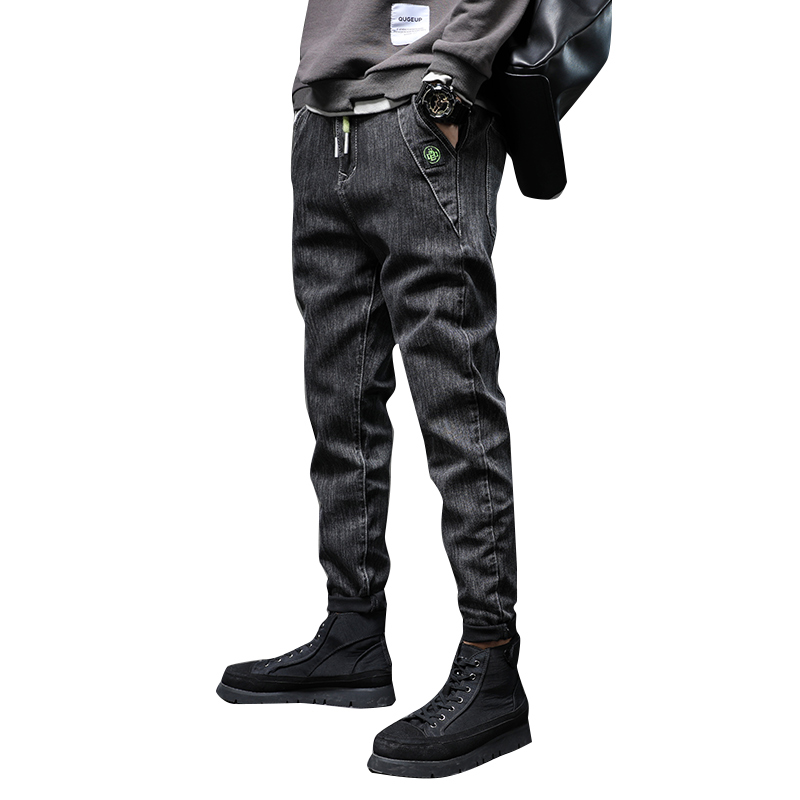 直筒的版型,上身效果很好,很显瘦,裤脚的毛边设计,更显时尚感。