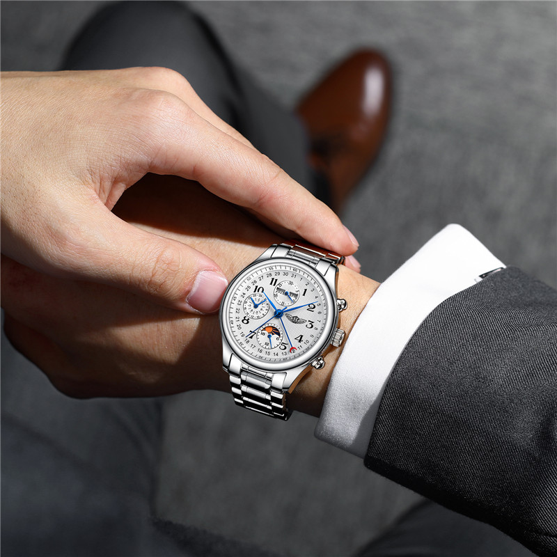 手表采用全自动机械机芯制作,走时精准,防水性能好。