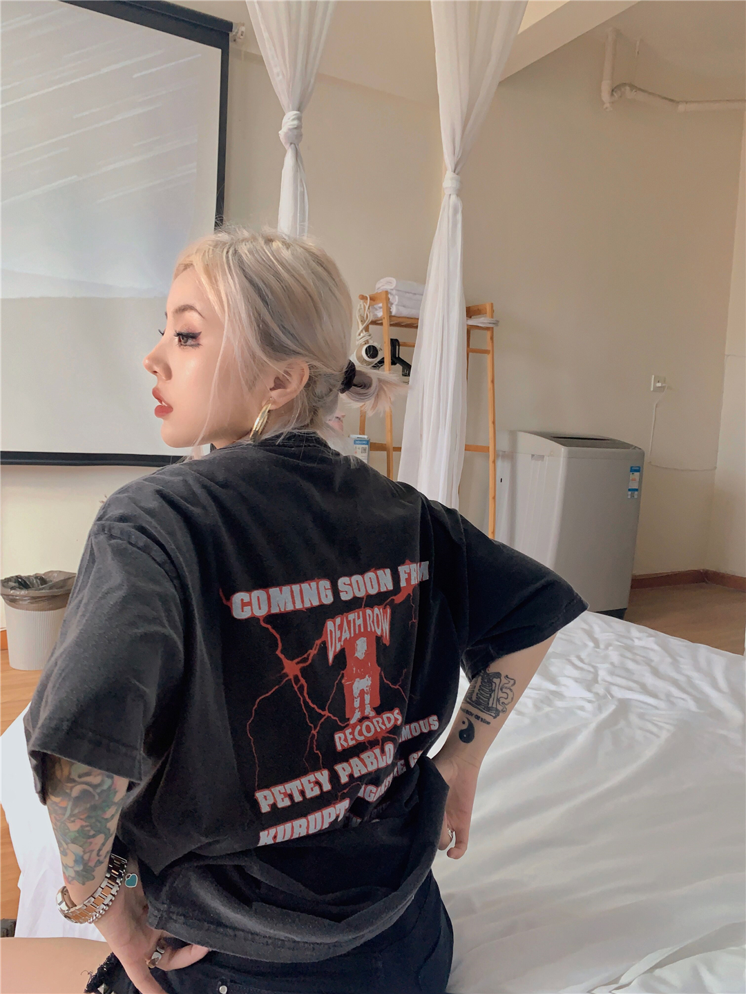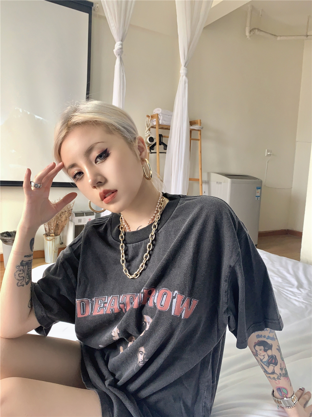 这款t恤是简约的风格,宽松的版型,时尚百搭,胸前的字母印花,很有个性,搭配牛仔裤或者短裤都很好看。
