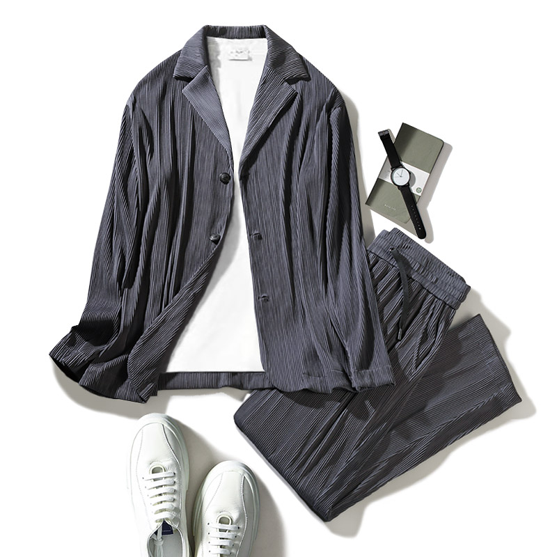 这款西装套装,采用了西装的版型,搭配上条纹的设计,更显时尚感,而且还能很好的修饰身材,让你穿出不一样的气质。
