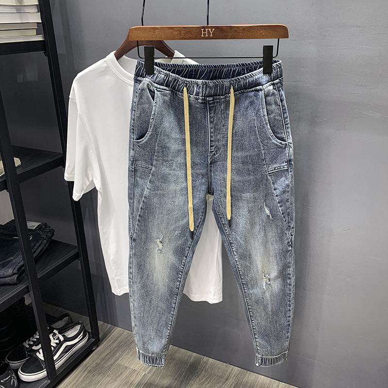 修身版型,凸显身材曲线。牛仔裤,穿着舒适不紧绷。破洞设计,彰显不羁个性。