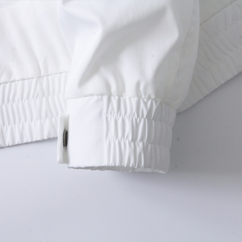 肩处撞色条纹的点缀,打破原本的单调,为整体带来更多的吸睛力,袖口处收紧的造型,紧贴手腕肌肤,能够起到更好的防风作用。