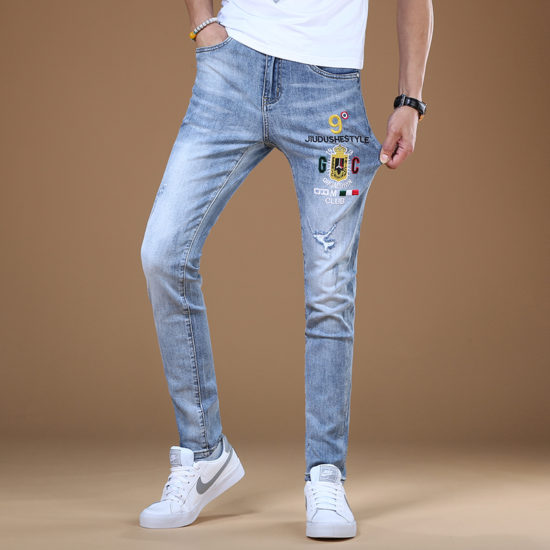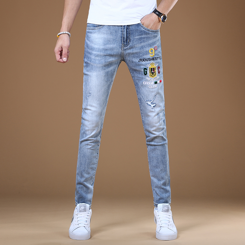 牛仔裤采用优质的牛仔面料,手感柔软,穿着舒适,修身的版型设计,上身效果很好,精致的刺绣图案,彰显个性,搭配一件T恤,就能轻松穿出潮男范。