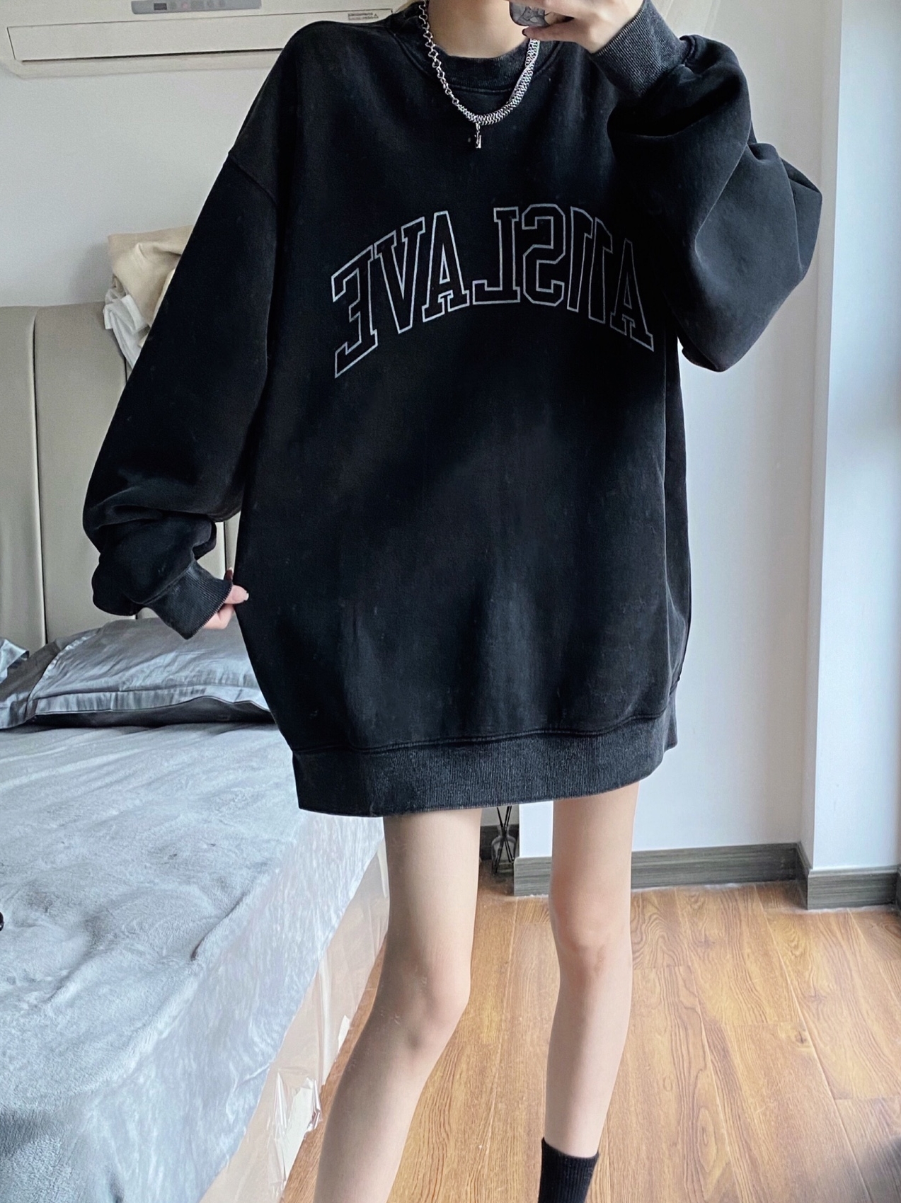 秋冬就需要这样一款做旧印花加绒卫衣,长袖卫衣搭配英文图案,时尚又个性,显得衣服没有这么单调。 舒适的卫衣面料,加绒内里凸显质感。