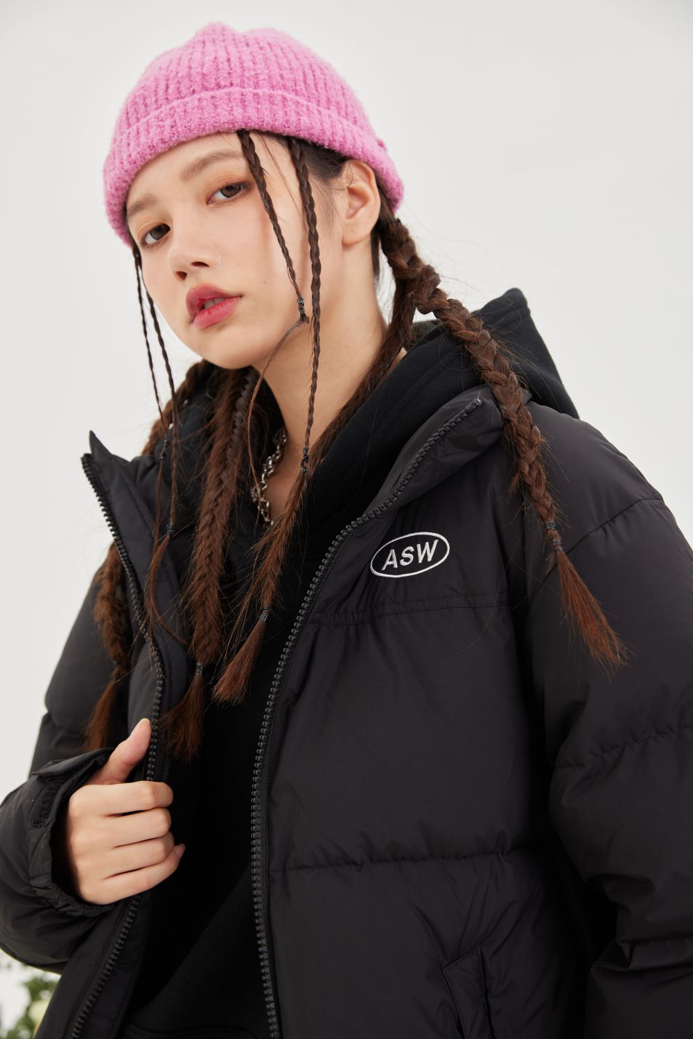 白鸭绒填充,轻盈又保暖,立领设计,修饰脖颈曲线,短款外套,拉长身材比例。