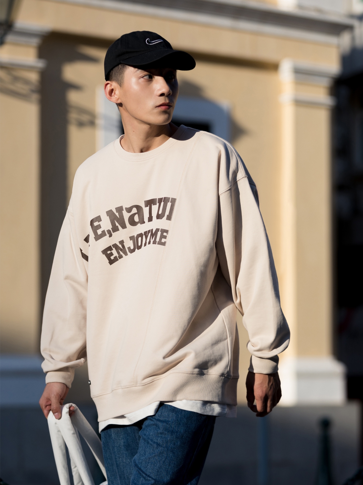 选用纯棉布料制造而成,吸汗透气,上身舒适亲肤。宽松的版型轻松驾驭,上身不紧绷,打造帅气潮流的风格。个性印花图案在前幅,衬托得整个人的潮流感十足,罗纹袖口自然舒适,防风保暖。圆领修饰颈部线条,穿脱方便又自在有型。