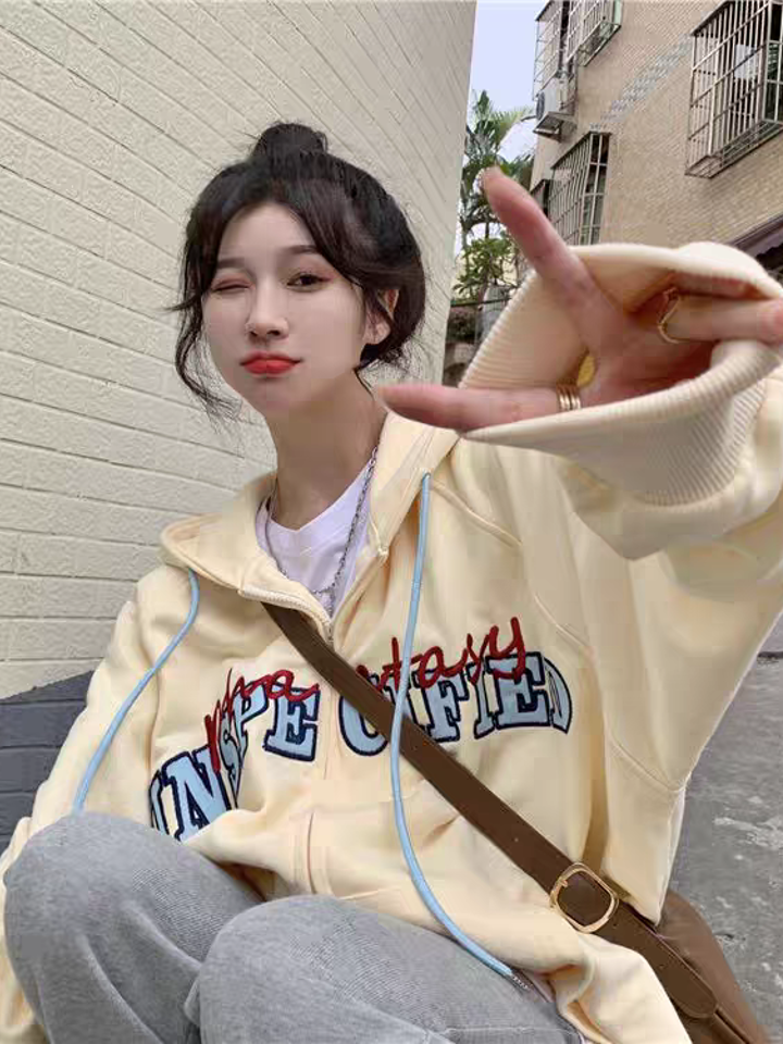 精选优质的卫衣面料,手感舒适软糯,透气性更加好,在版型设计上非常独特,将卫衣的元素与开衫的元素完美融合,成就了这款连帽开衫式卫衣,加绒卫衣也更加保暖,更适合这个乍暖还寒的季节。