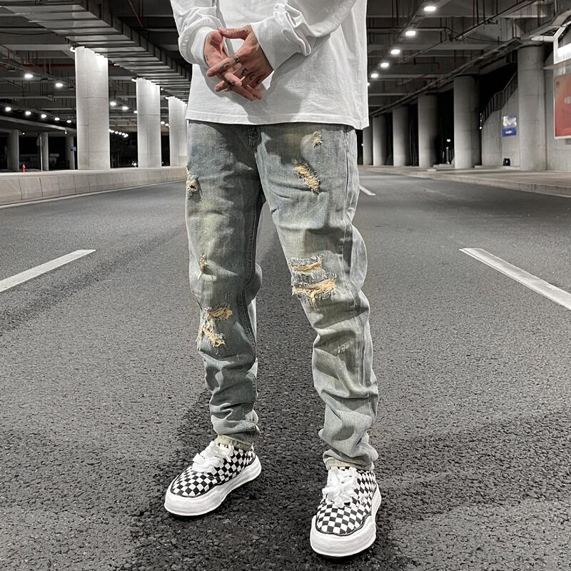 修身的版型,勾勒出纤细的腿部曲线。破洞的设计,让这款休闲裤看起来更有个性。