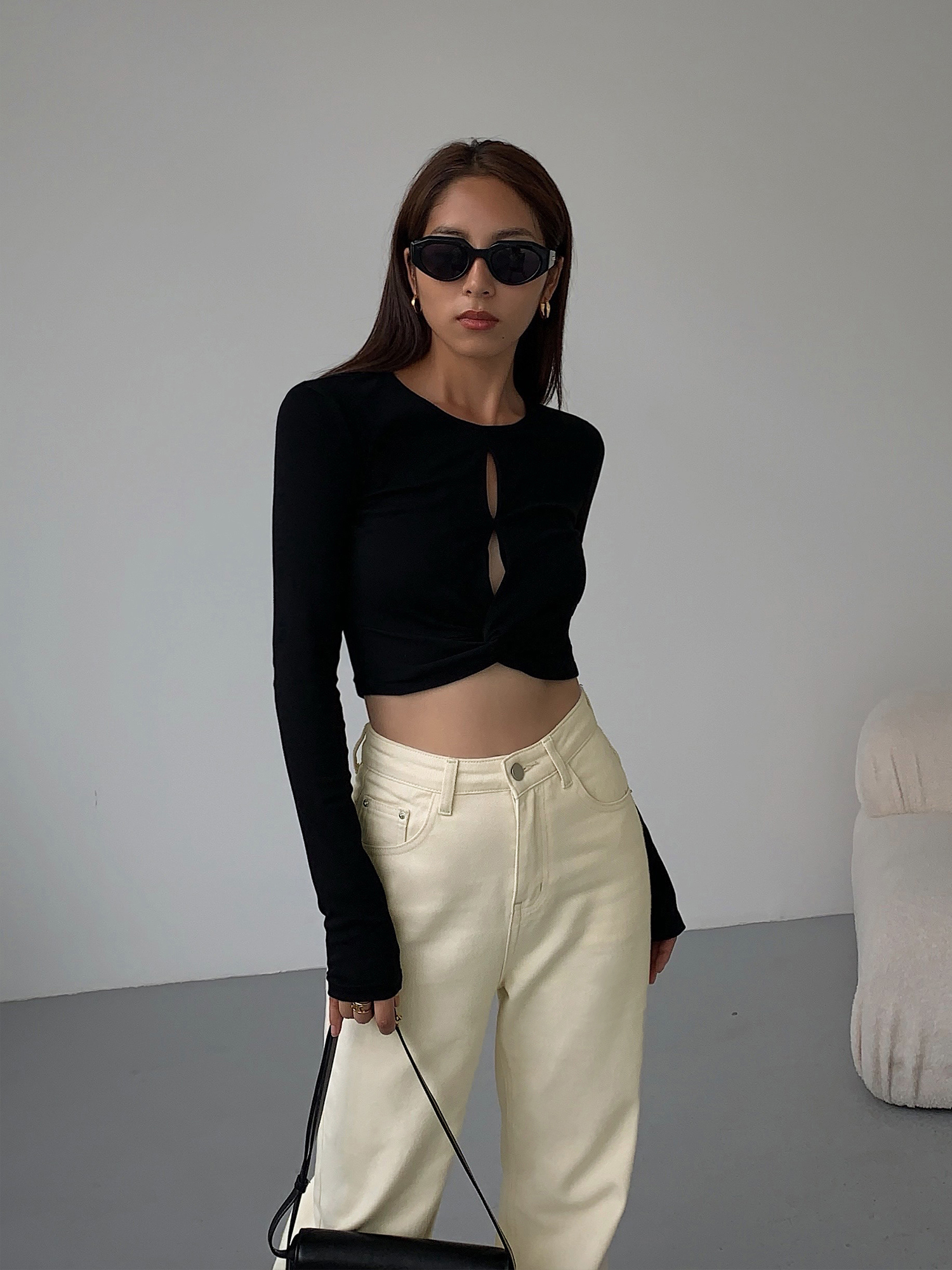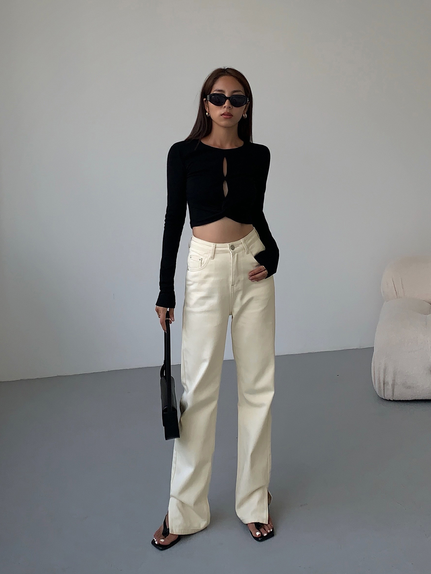 这款牛仔裤的设计很有特色,高腰的版型,很好的修饰了身材比例,显瘦效果很棒,搭配一件T恤,就能轻松穿出时尚感。