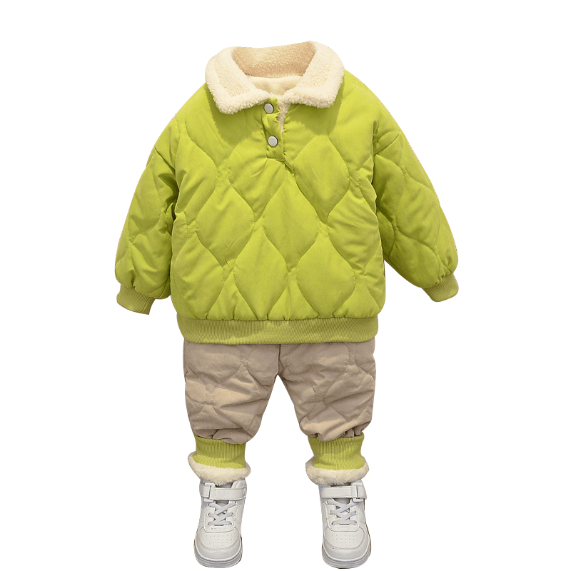这款儿童套装,采用了优质的面料,手感柔软,穿着舒适,时尚的连帽设计,让宝宝穿上更显帅气。