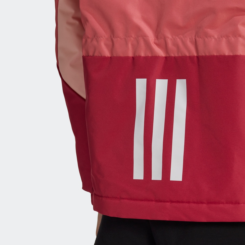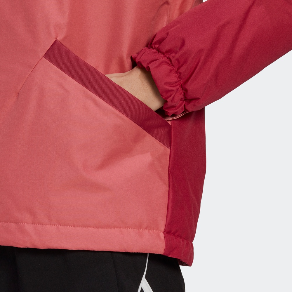 肩处撞色条纹的点缀,打破原本的单调,为整体带来更多的吸睛力,袖口处收紧的造型,紧贴手腕肌肤,能够起到更好的防风作用。