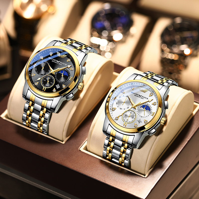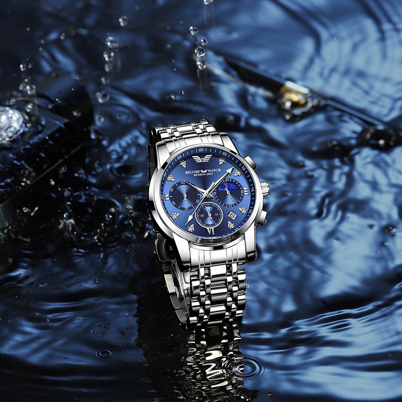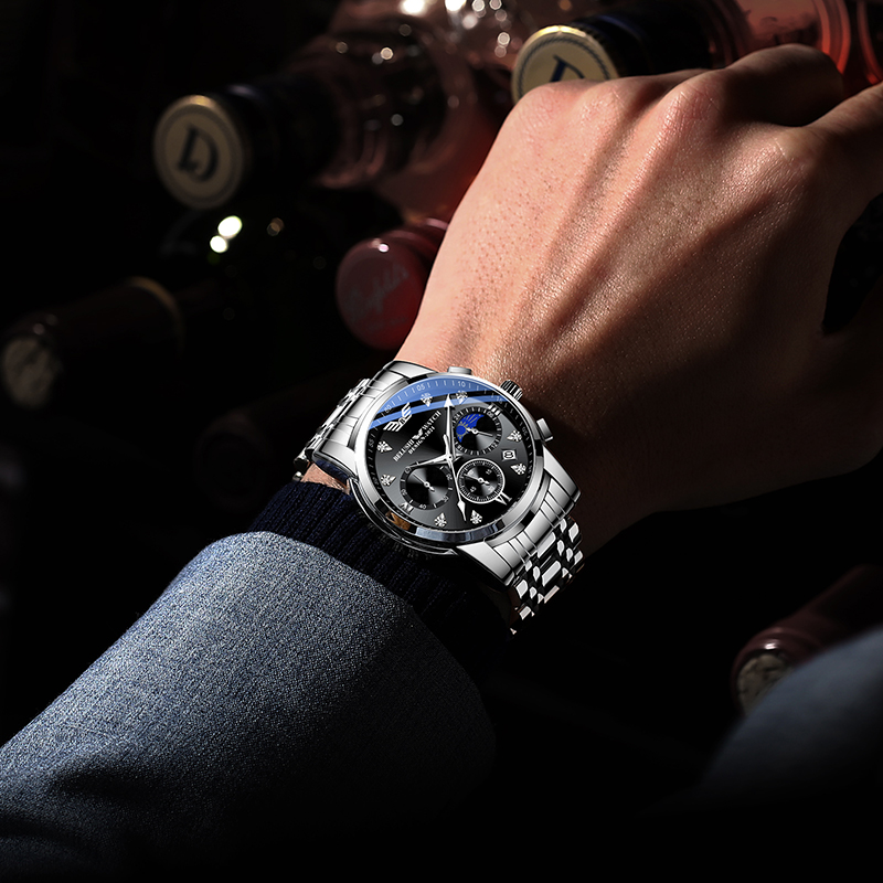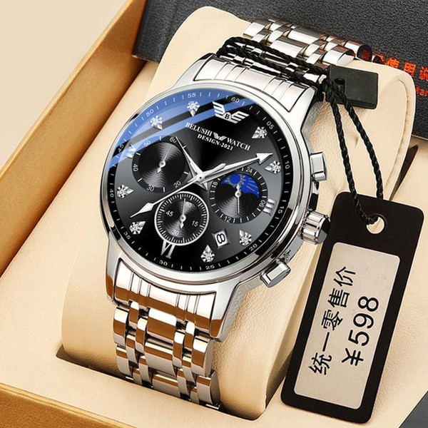 此款男士手表,精选人工合成蓝宝石表镜,耐磨防刮,不锈钢表壳材质,佩戴舒适,真皮表带。