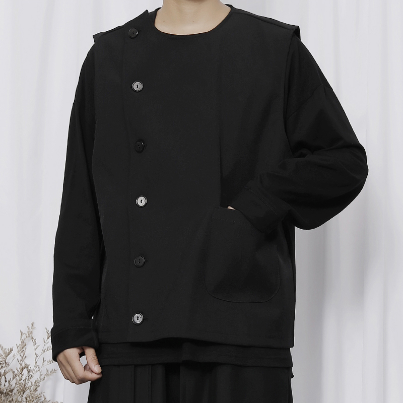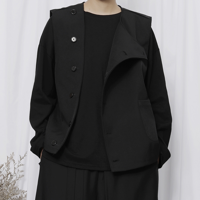 单排扣设计,穿脱更方便,经典复古风格,时尚百搭,宽松版型,穿着舒适自在,圆领设计,修饰颈部线条。