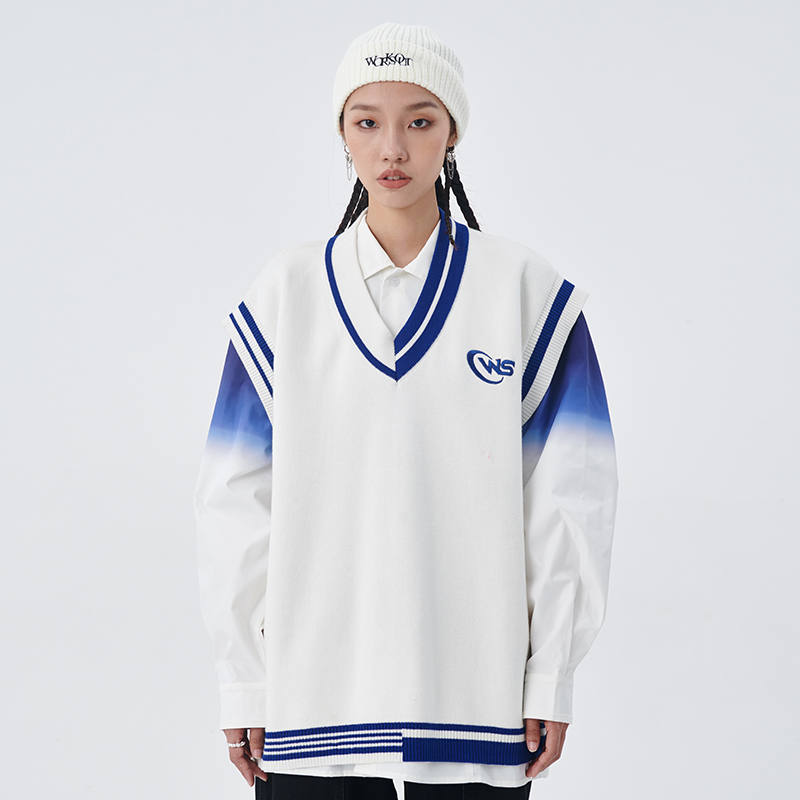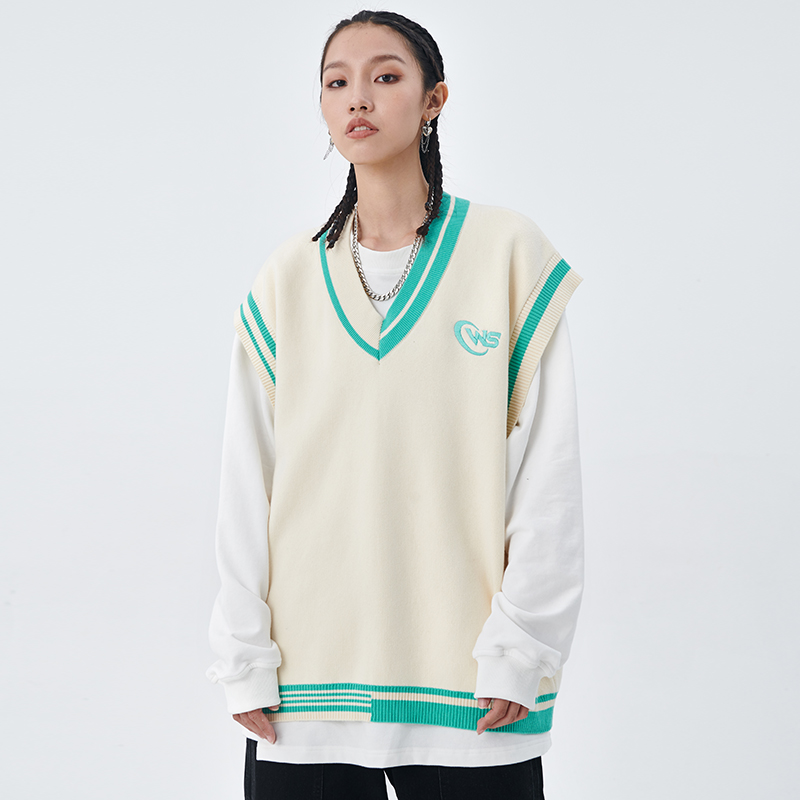 针织材质,穿着舒适透气,马甲版型,穿着无束缚感,精致刺绣,彰显品牌质感,经典圆领设计,简约大方。