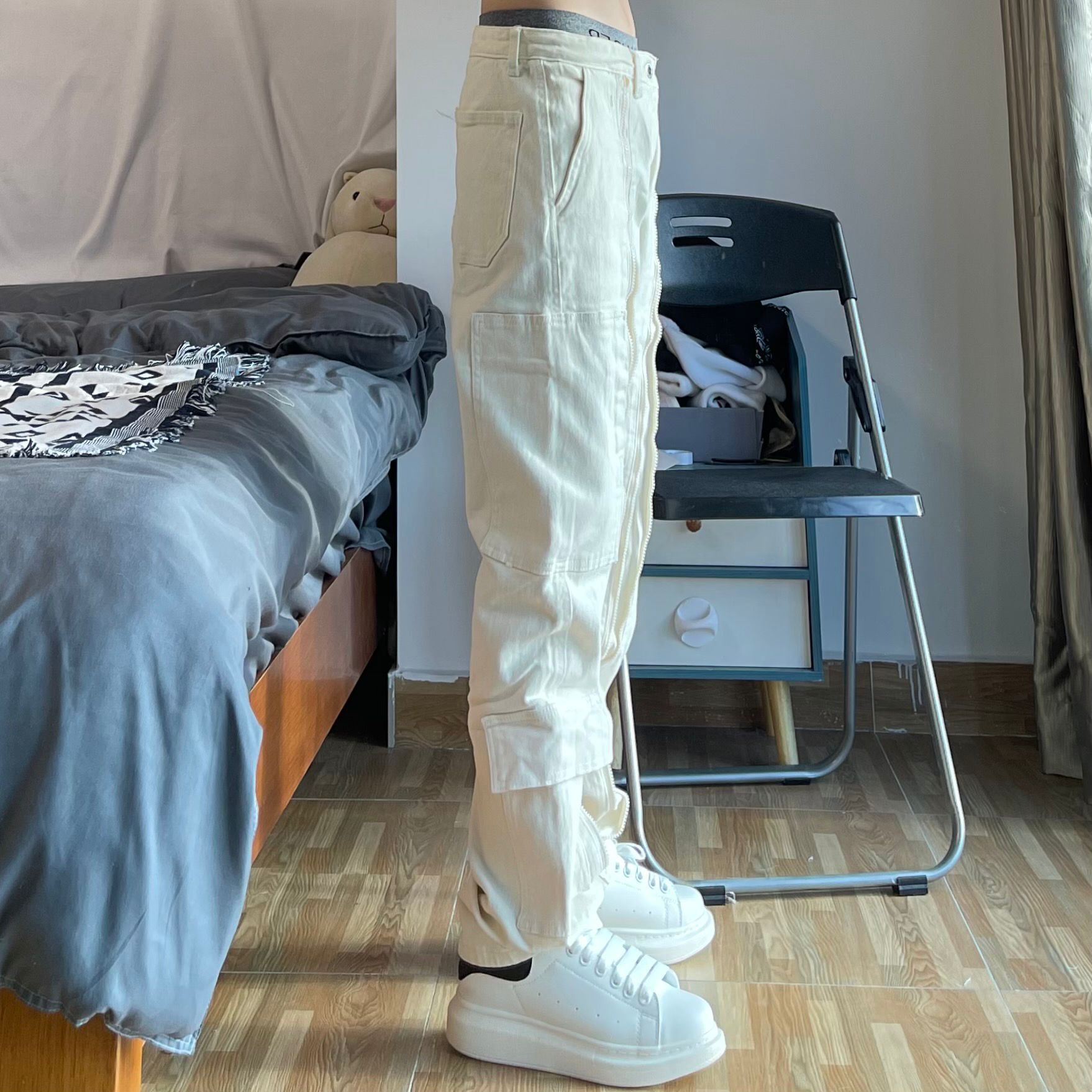 工装裤采用了工装的版型设计,搭配上多口袋的设计,让裤子更具时尚感。