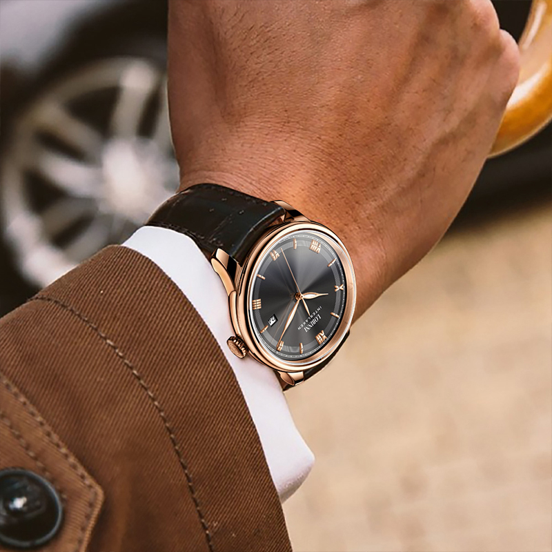 人工合成蓝宝石镜面材质,防刮耐磨。经典圆形表盘,简约时尚大气,尽显男士魅力。