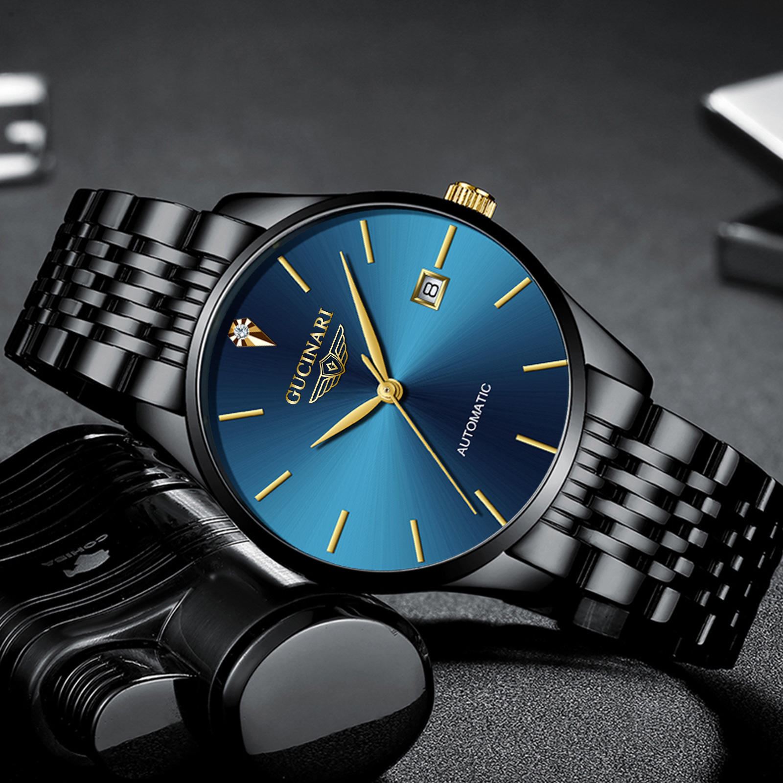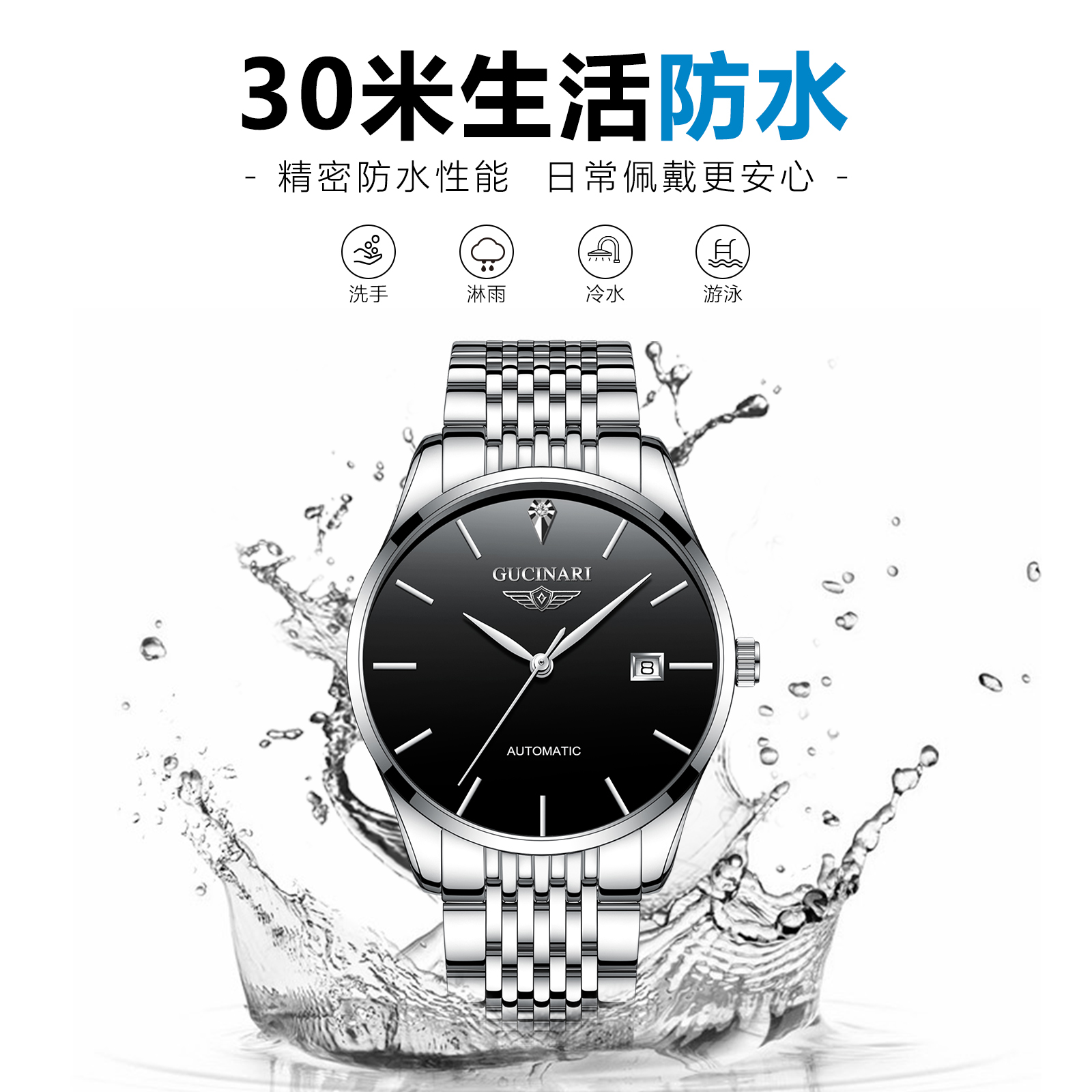全自动机械机芯,精准的走时。采用人工合成蓝宝石表镜,防刮耐磨,更经久耐用。