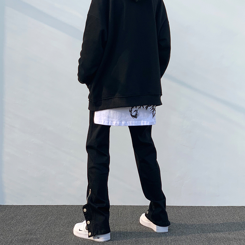 不规则的破洞设计,让裤子更具个性,宽松的版型,不挑身材,穿着舒适自在。
