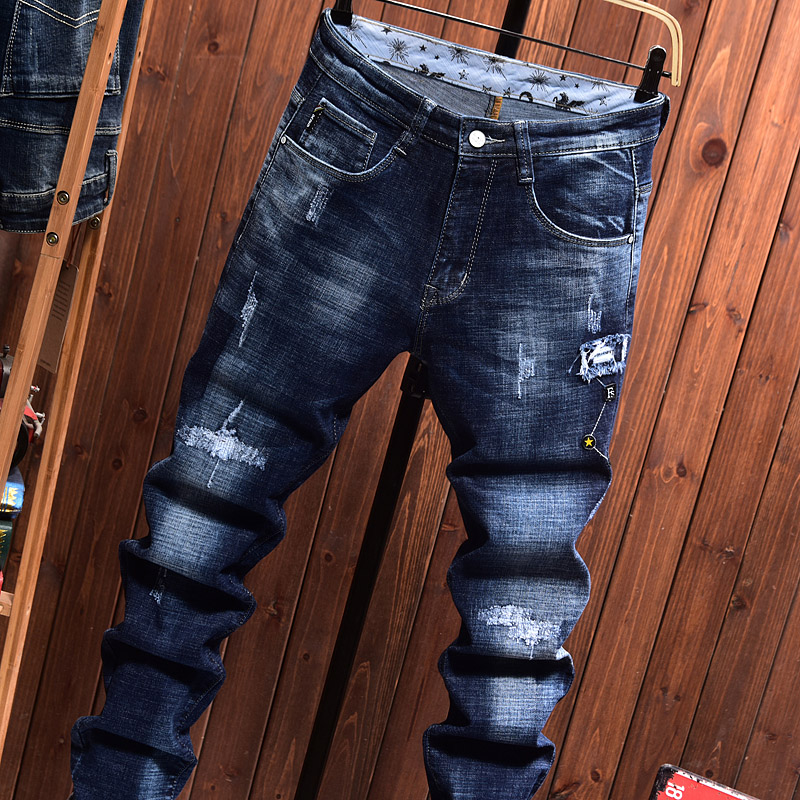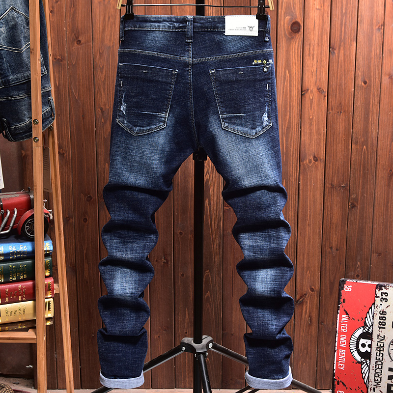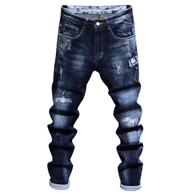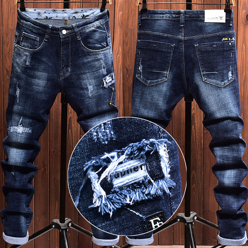破洞设计,彰显男士魅力,牛仔裤,穿着舒适不紧绷,修身版型,凸显身材曲线,直筒裤型,修饰腿部线条。