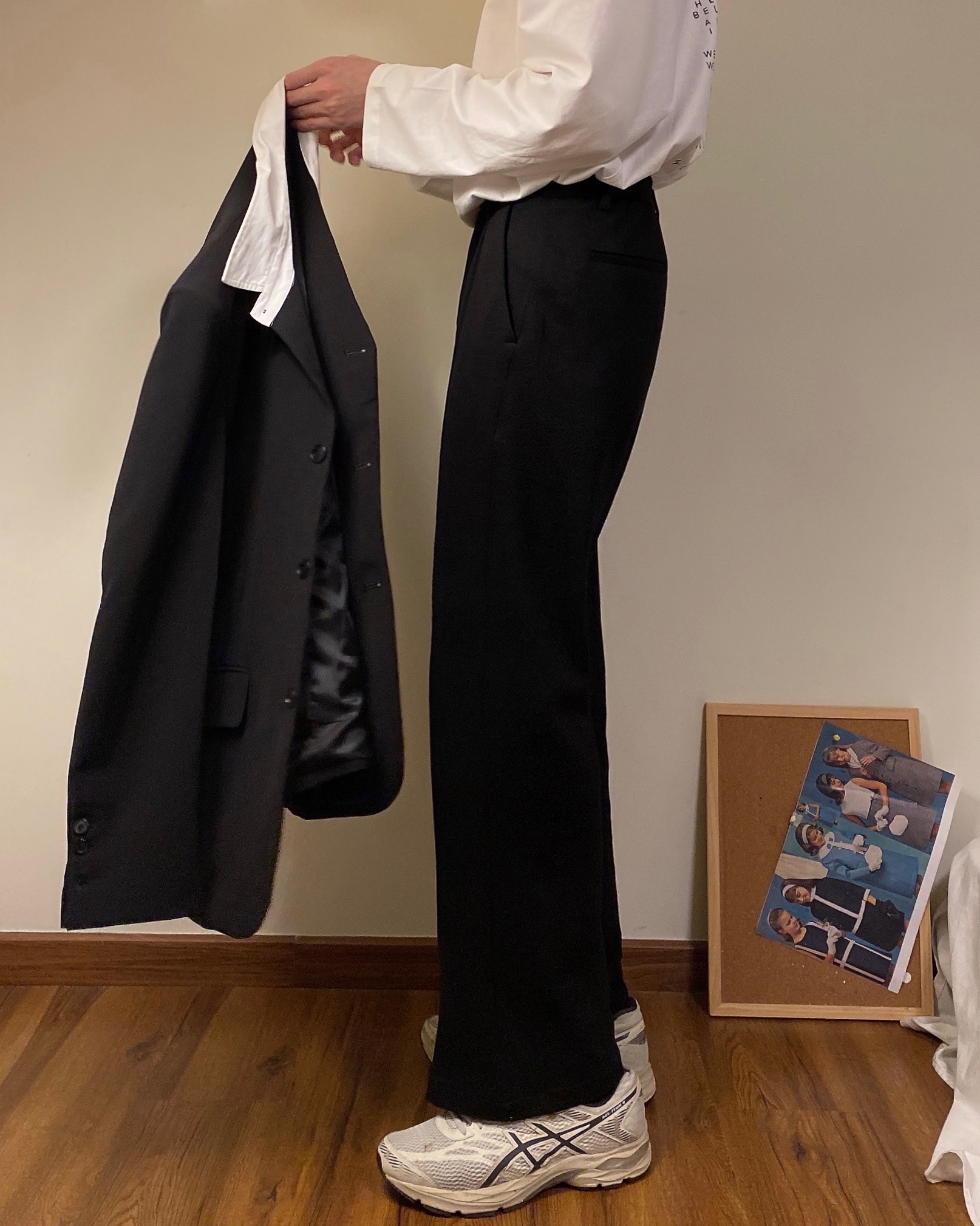高腰的设计,拉长腿部线条,显瘦效果很好,高腰的版型,很显高挑,修身的剪裁,修饰腿部曲线,上身很有范。