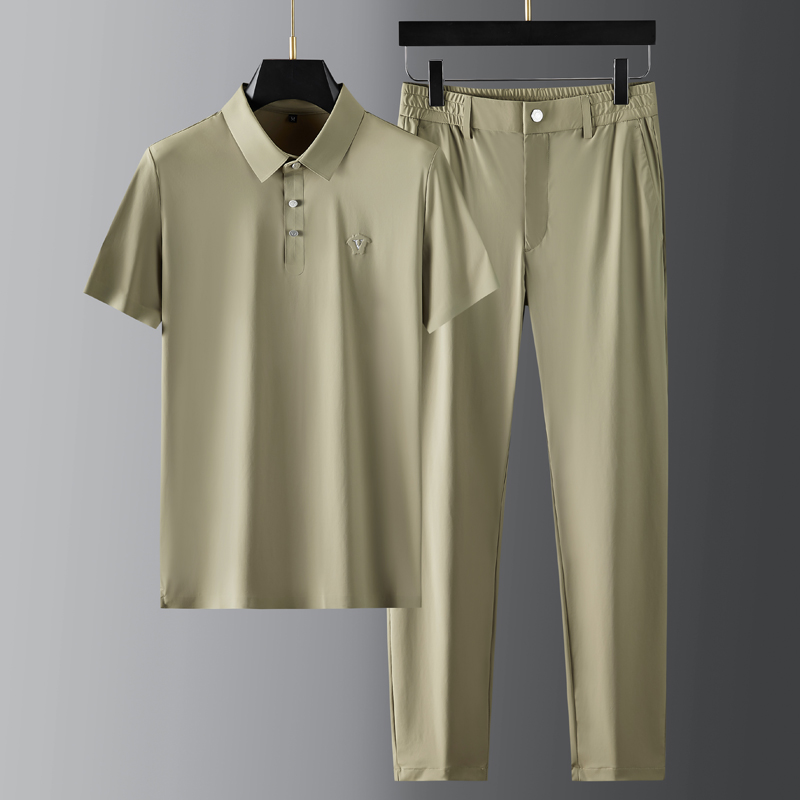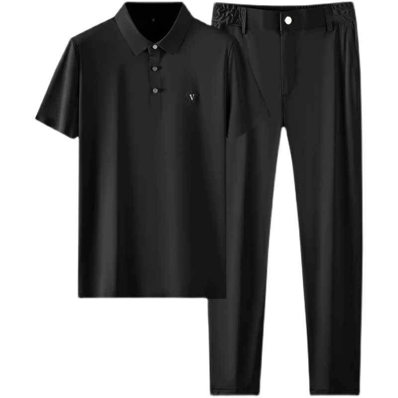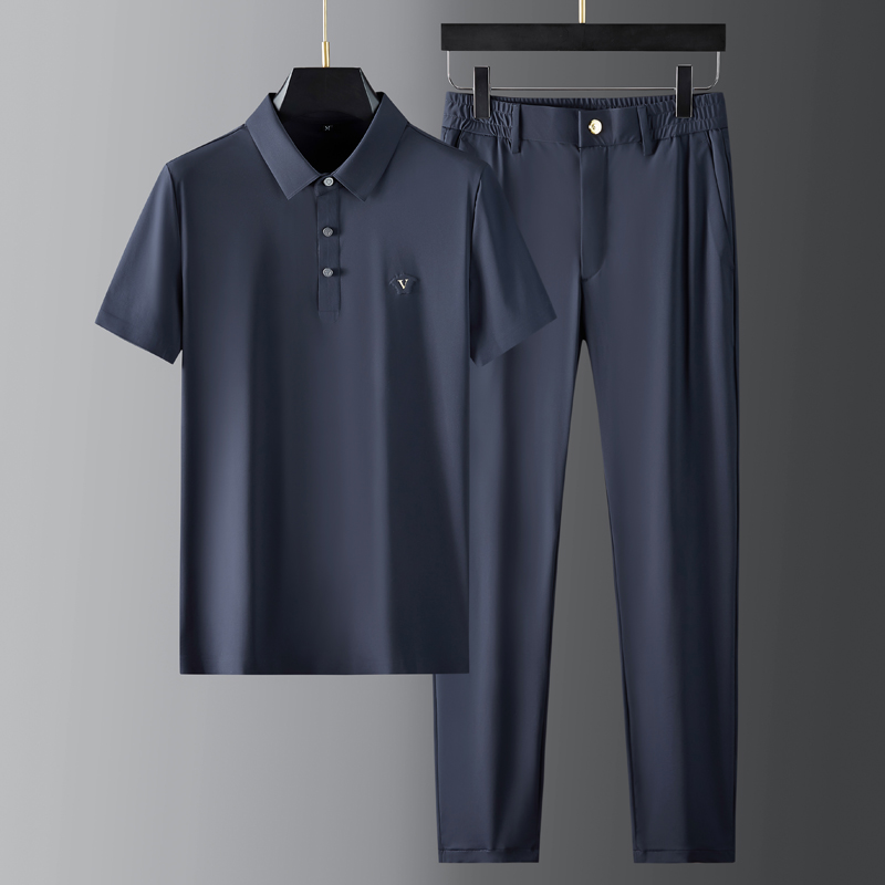 修身版型,凸显身材曲线,套装设计,省去搭配烦恼,冰丝面料,穿着舒适透气,翻领设计,彰显绅士气质。