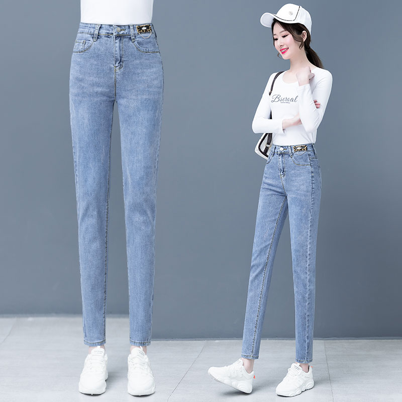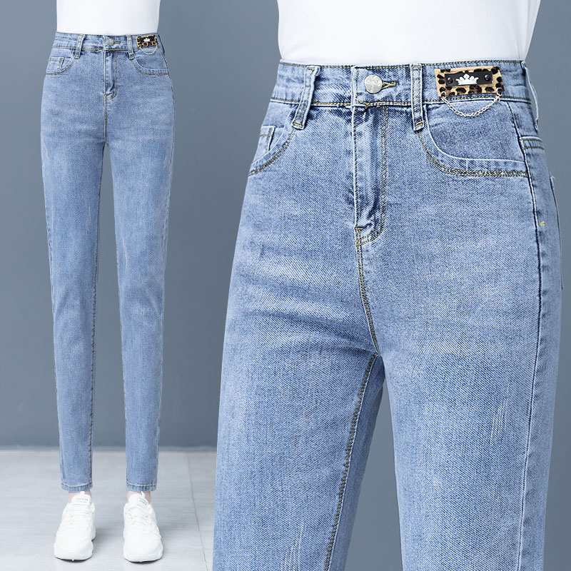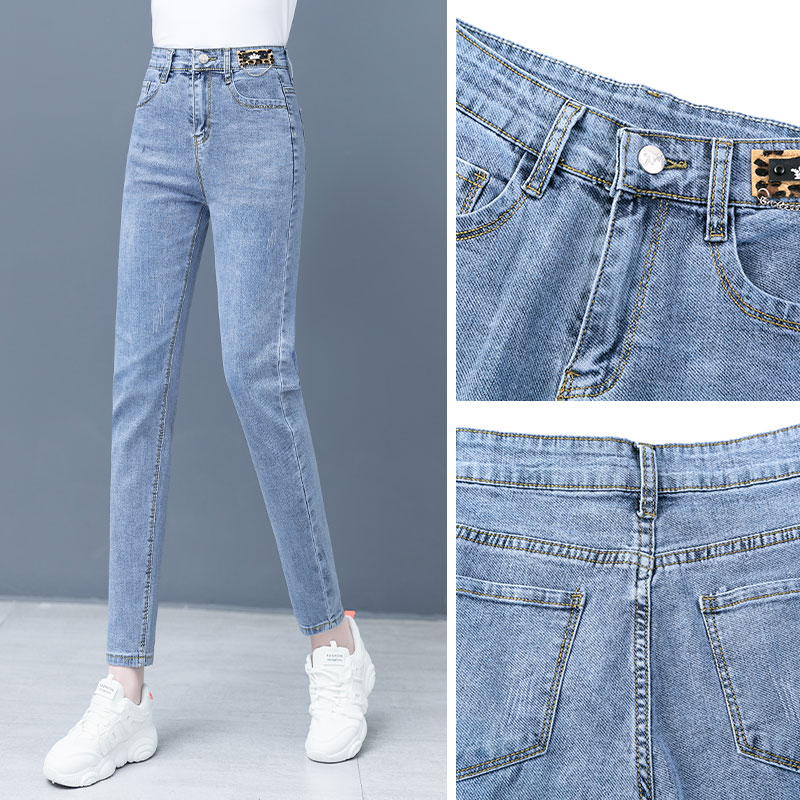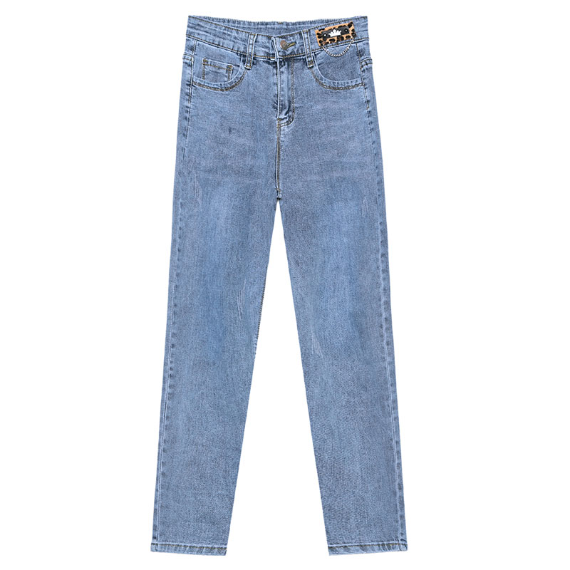 高腰设计,拉长身材比例。高腰牛仔裤,显瘦显腿长。直筒裤型,修饰腿部线条。