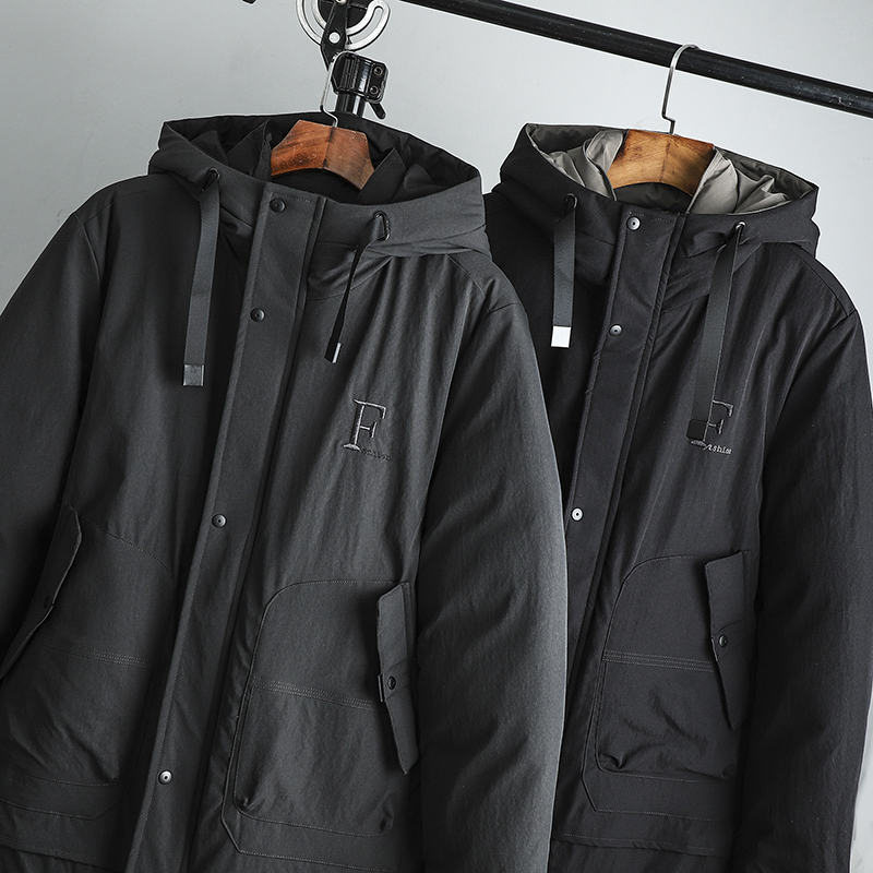 连帽设计,防风保暖性强,中长款的版型,修饰身形,纯色的色调,简约又百搭,加厚厚实,保暖效果极佳。
