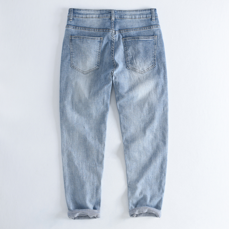 牛仔裤采用了修身的版型设计,穿着舒适有型,修身版型的剪裁,上身效果很好,很显瘦,搭配一件T恤,就能轻松穿出潮男范。