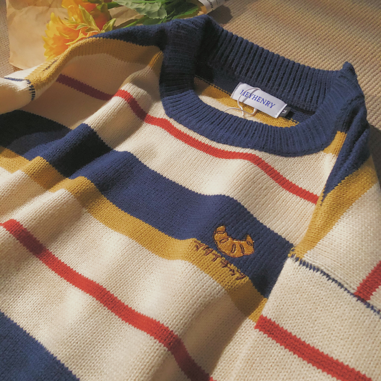 撞色拼接设计,个性时尚,毛衣面料,穿着舒适保暖。