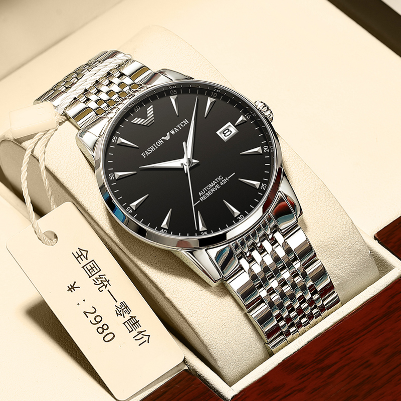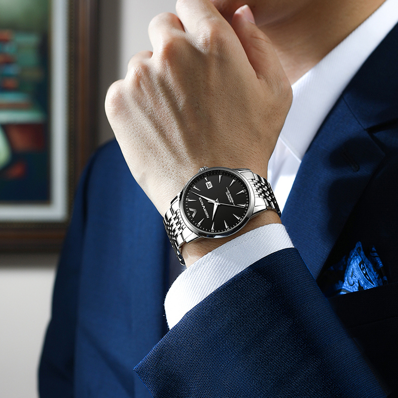 瑞士原装进口机芯,走时精准。人工合成蓝宝石表镜材质,防刮耐磨,精钢表壳,佩戴舒适。