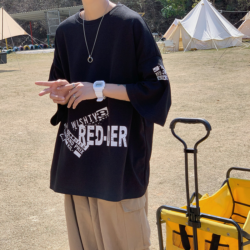 这款t恤是简约的风格,宽松的版型,时尚百搭,胸前的字母印花,很有个性,搭配牛仔裤或者短裤都很好看。