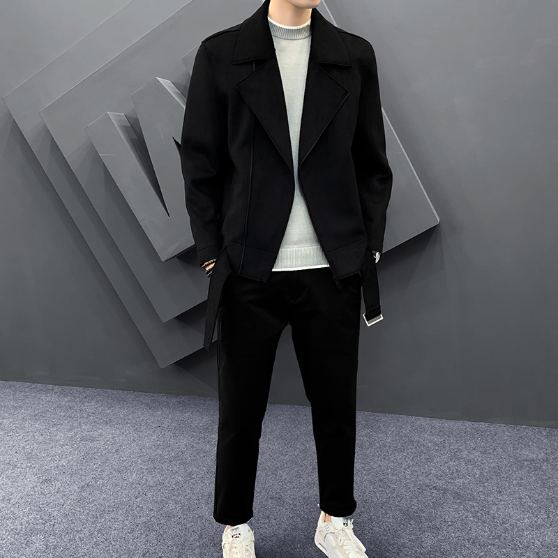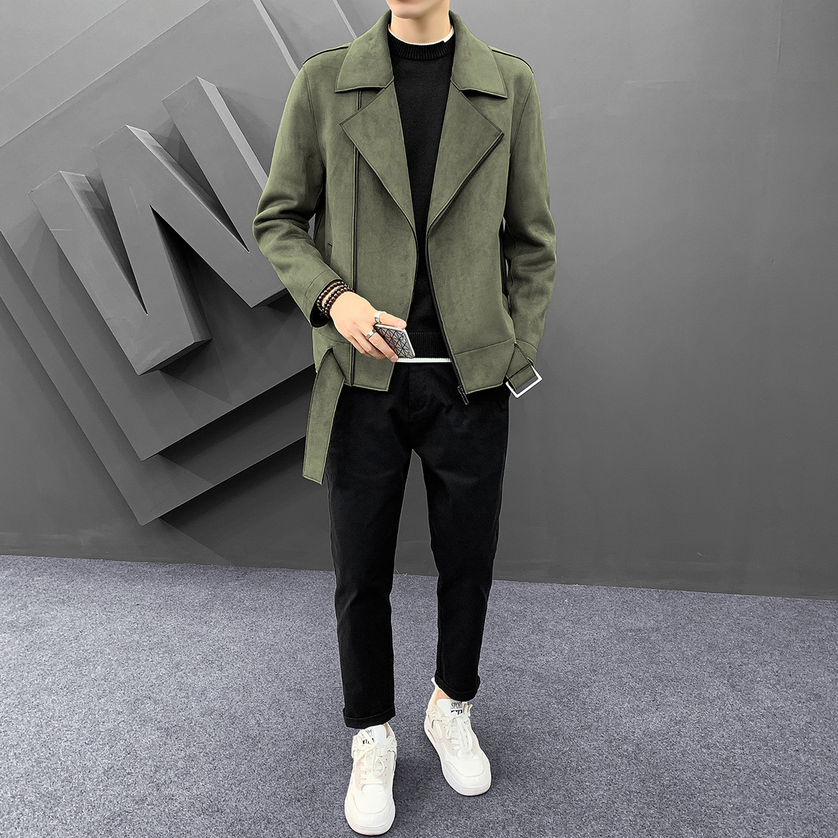 麂皮绒材质,舒适又保暖,翻领设计,彰显男士魅力,短款外套,拉长身材比例。