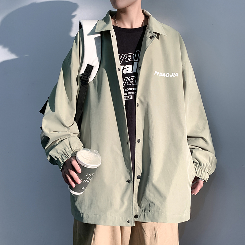 宽松夹克版型,修身显瘦,短款外套,拉长身材比例,经典翻领设计,简约大方,衬衫翻领,修饰颈部线条。