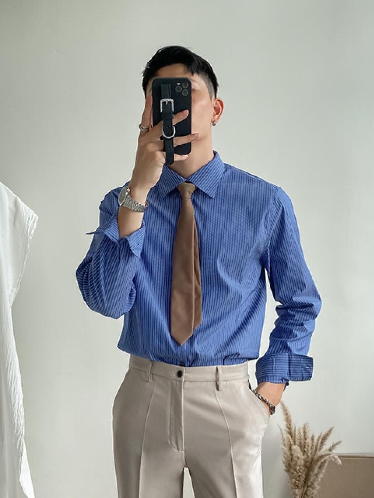 衬衫竖条纹的设计,简约不张扬,低调却有自我格调,版型立体挺括,搭配西裤穿着,彰显成熟的型男魅力。