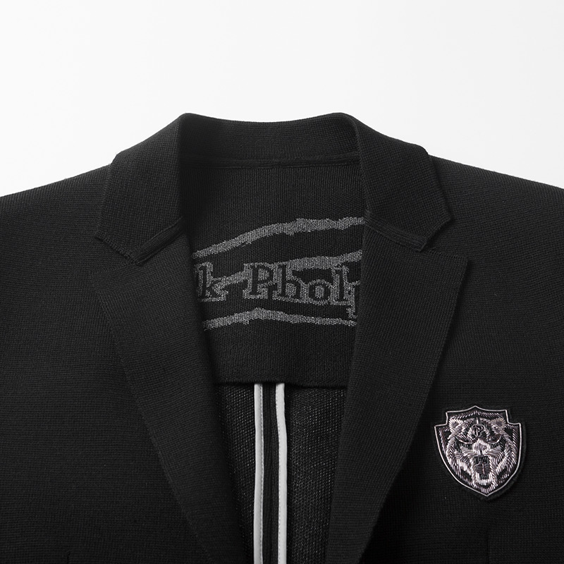 经典的西装翻领,修饰颈部线条,凸显男士的干练气质,修身的版型,勾勒出曼妙的身姿,时尚的印花,彰显青春活力。