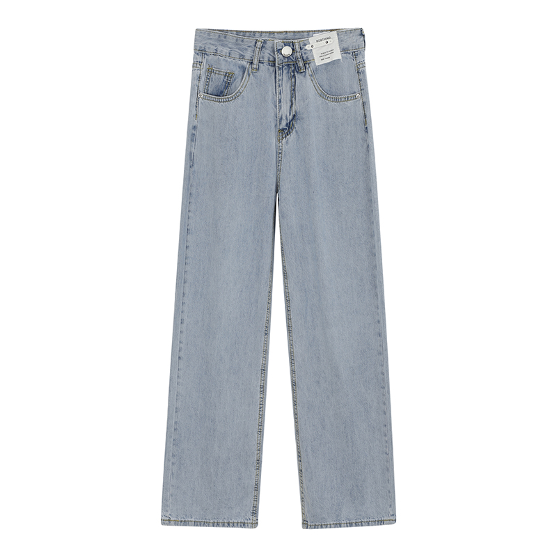 高腰设计,拉长身材比例。高腰牛仔裤,显瘦显腿长。直筒裤型,修饰腿部线条。