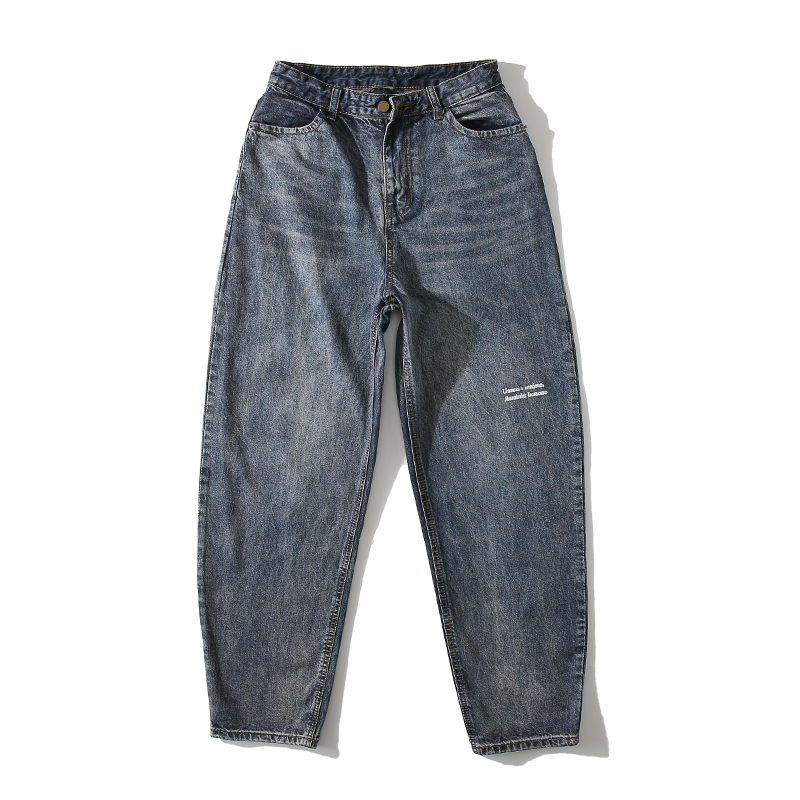 这款牛仔裤是街头范的,宽松的版型,不挑身材,上身效果很好,裤脚的毛边设计,很有个性,搭配一件T恤,就能轻松穿出潮男范。