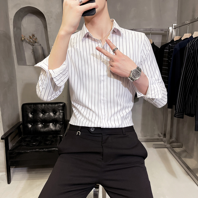 这款衬衫来自于时尚品牌,衣身采用了经典的条纹元素,搭配上经典条纹,更显时尚潮流。