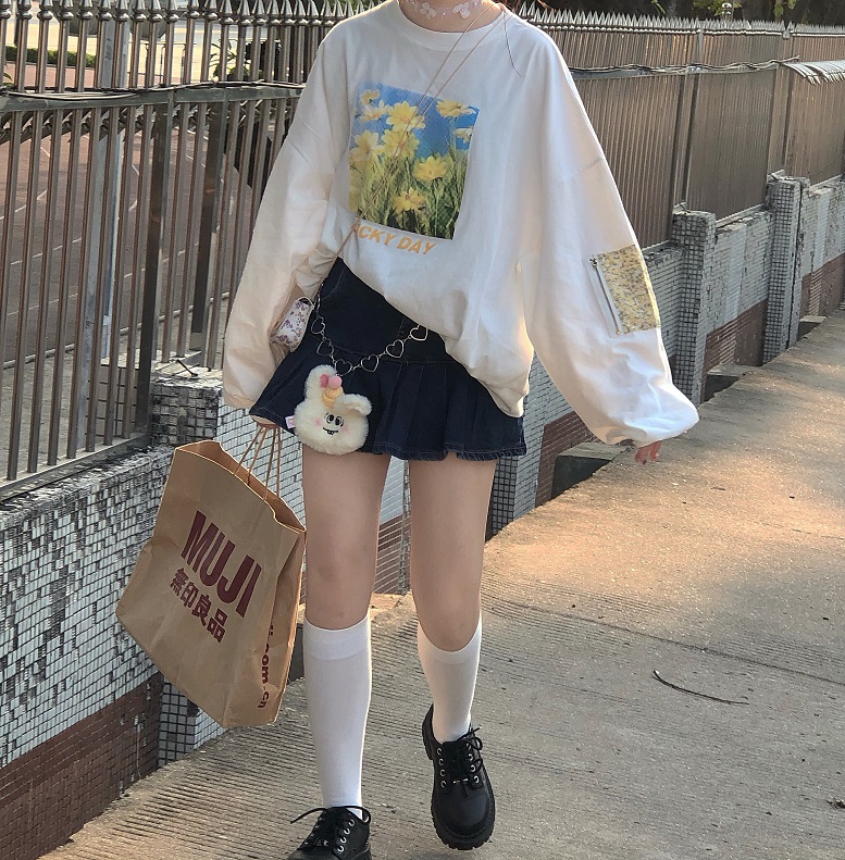 半身裙采用了牛仔面料,手感柔软,穿着舒适,宽松的版型,不挑身材,上身效果很好,很显瘦。