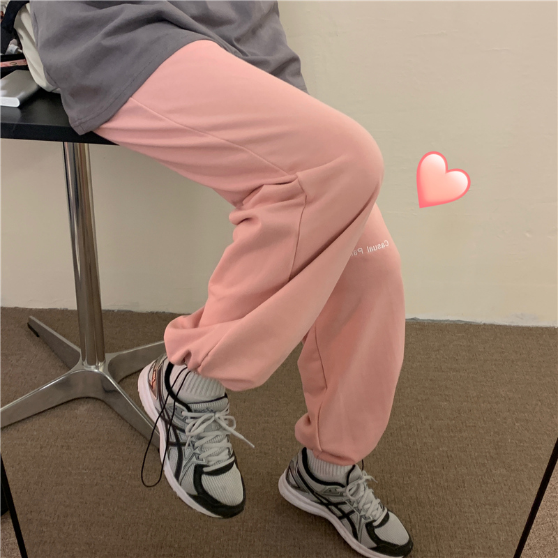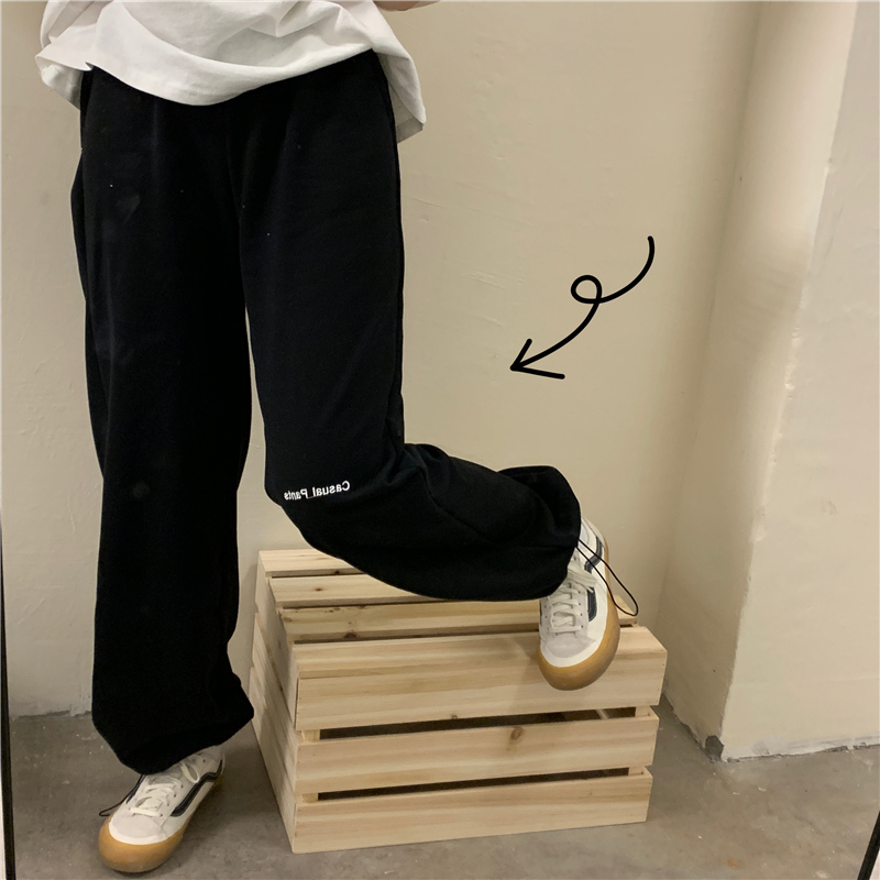 字母刺绣的设计,让裤子看起来更加的时尚,宽松的版型,不挑身材,很显瘦哦。